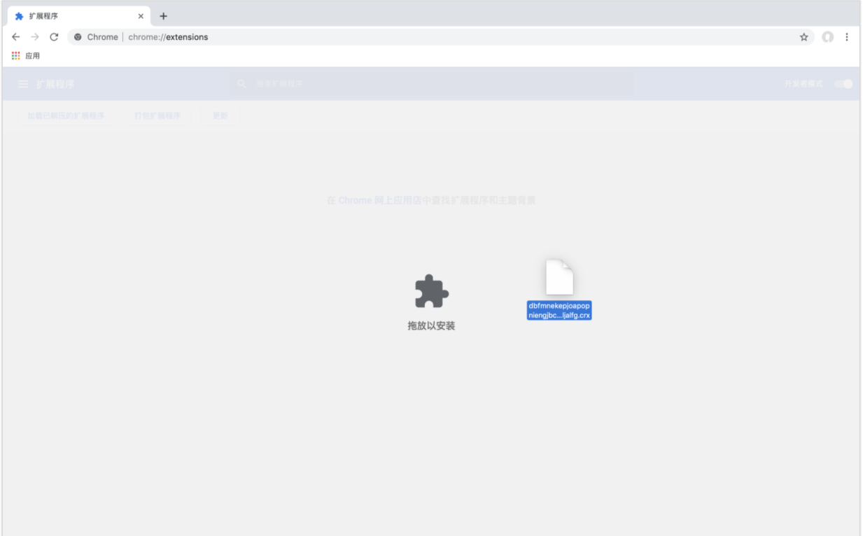 (3) 将crx文件拖拽到扩展程序页面,完成安装