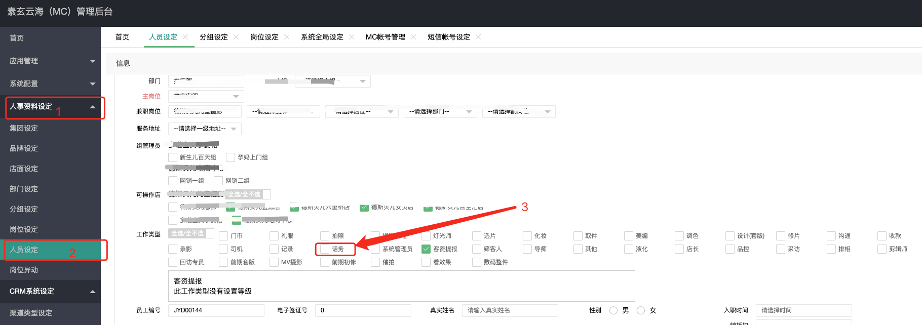 1、检查MC后台,点击员工编辑,看工作类型处,有没有标上话务