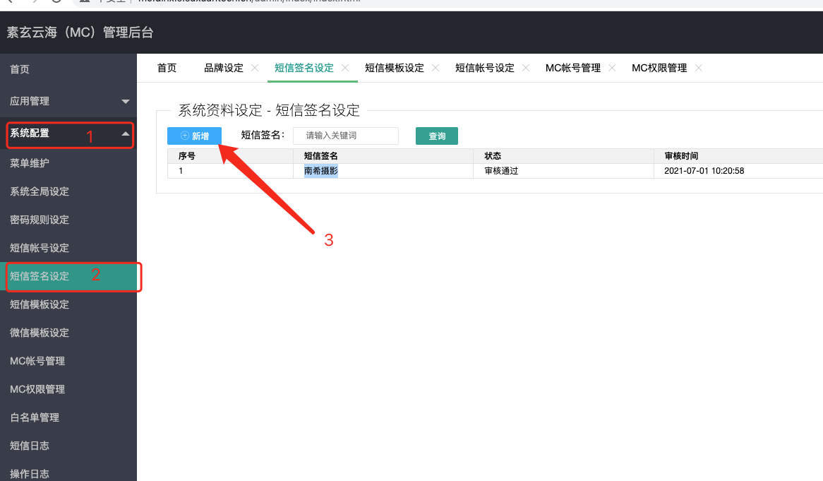 返回到 会员系统验证码短信发送配置
